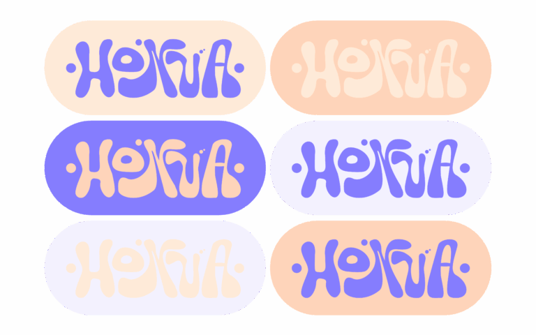 Pour compléter ces logos, il fallait trouver des couleurs qui pourraient se rattacher aux croquis. Ainsi, je me suis lancé dans un court travail de réflexion pour trouver des couleurs réellement représentatives de l’univers de l’artiste. J’ai pensé directement à des couleurs désaturées, opposées aux couleurs vives. Elles permettent de créer un sentiment de légèreté, de douceur, en opposition aux couleurs vives qui sont impactantes qui peuvent s’avérer presque agressives. Ainsi j’ai choisi des trois nuances de bleu qui se rapprochent du violet, une nuance de jaune et enfin une nuance d’orange. J’ai choisi ces couleurs en fonction de leurs significations, le bleu rappelle le calme, l’harmonie, et elle est une couleur que l’on retrouve énormément dans le travail de l’artiste mais. Pour le jaune, il est associé à la joie et à la positivité enfin leorange rappelle la créativité. Toutes ces couleurs ont pour but de rappeler les valeurs rattachées à l’artiste,mais j’ai également choisi ces couleurs en suivant quelques préceptes de la théorie des couleurs.