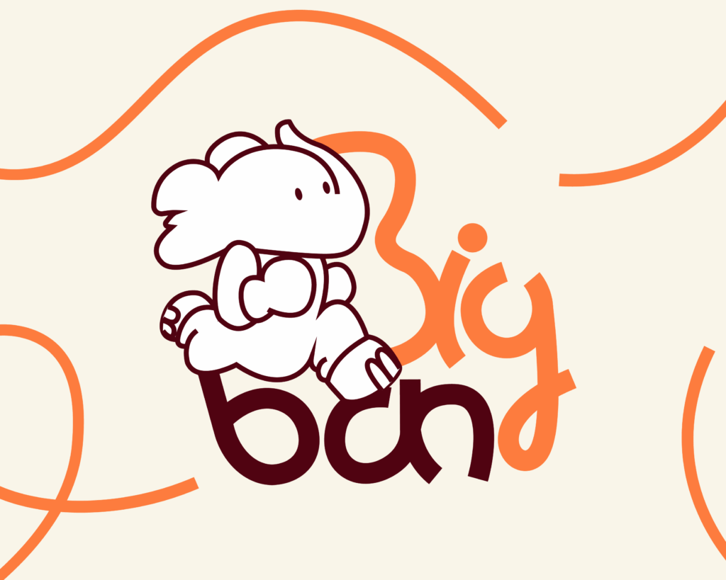 Big Ban est une enseigne de restauration rapide emblématique à Besançon. Fondée en 1982, elle est réputée pour ses burgers généreux, ses paninis, ses sandwichs et ses salades, le tout préparé avec des ingrédients frais et locaux. L’enseigne propose également des options végétariennes, des frites maison et des sauces originales. Les restaurants Big Ban offrent un cadre décontracté, idéal pour un repas rapide, une bonne solution pour les étudiants de la ville. Alors, dans le cadre de notre cours de PAO, nous avons imaginé une nouvelle charte graphique pour la marque BigBan, et cela en retenant deux caractéristiques essentielles, la rapidité du service et la mémoire d’éléphant des préparateurs de commande.
